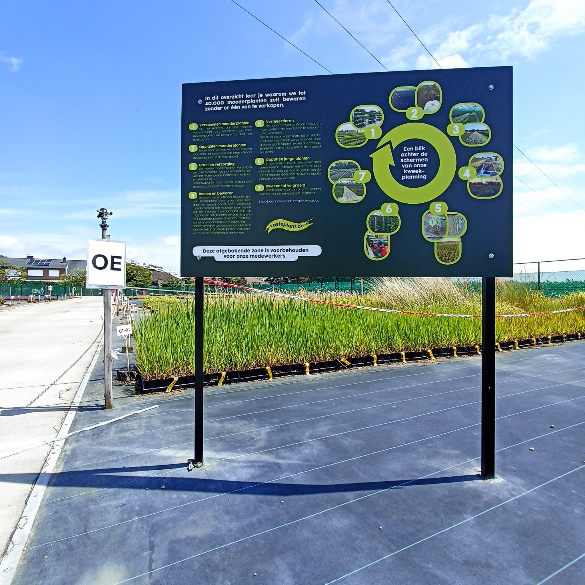 In september starten we ons kweekjaar weer op. Sinds enkele maanden prijkt er een infobord aan de zone waar onze moederplanten* worden gekweekt (OE). Dit bord geeft je een unieke inkijk in onze kweekplanning. Ga tijdens je volgende bezoek zeker een kijkje nemen!