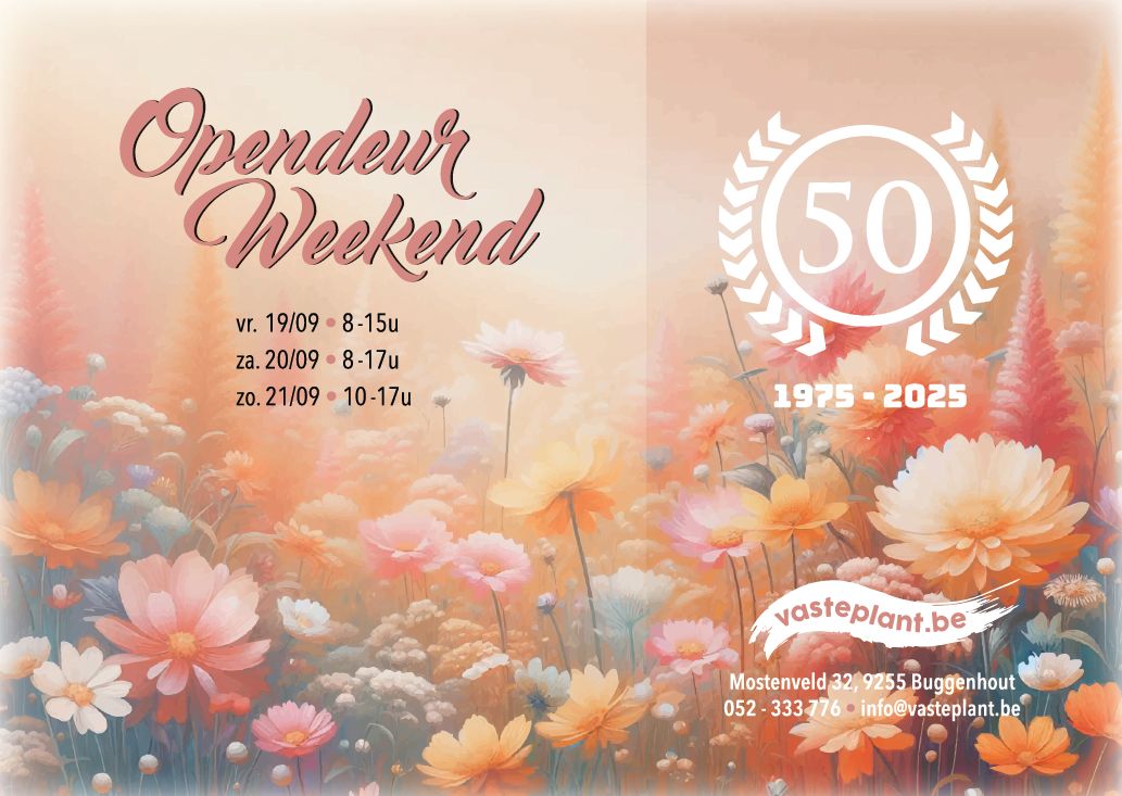 Eind september vinden onze jaarlijkse opendeurdagen opnieuw plaats. Dit jaar maken we er een bijzondere editie van, want onze kwekerij viert haar 50-jarig bestaan! We nodigen je graag uit om dit feestelijk moment samen met ons te beleven op volgende data: